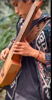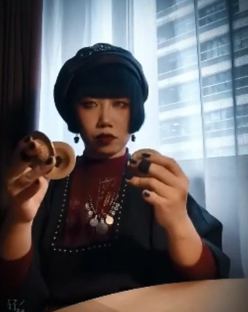 这次的服装是魏晋风格的宽袖交叉领汉服。为了方便弹拨乐器,添加了 panbo。(襻膊,pàn bó,起源于宋代,一种用来卷起袖子方便作的工具),帽子是一顶手工编织的草帽,整体混搭看起来比较“平淡”,感觉下一秒就要开始插秧了哈哈哈哈哈哈~